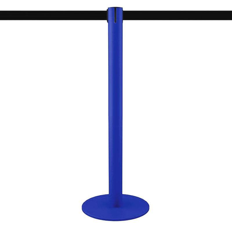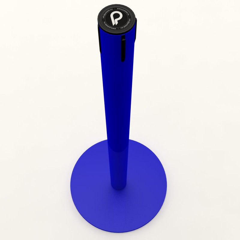 (0) Abgrenzungsständer mit 250cm ausziehbarem Gurt, blau pulverbeschichtete Edelstahl Fertigung.
