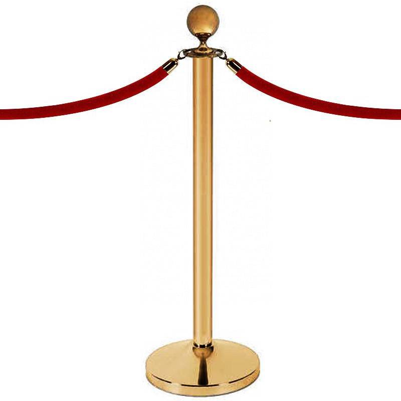Goldener Pfosten für Samtkordel (Kordel 150cm, ⌀38mm, erhältlich in rot mit Verschluss und vergoldeter Endkappe, separat zu kaufen: siehe Fenster "Zubehör").