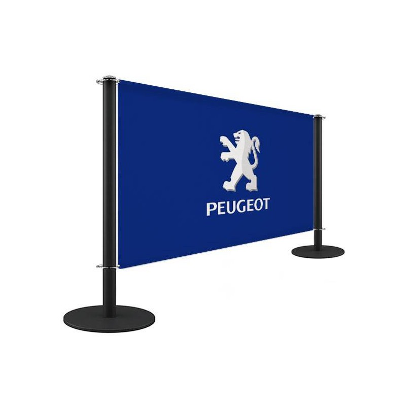 Prix calculé sur base de: 2 poteaux, 2 traverses horizontales, 1 visuel personnalisé (polyesther micro-perforé)