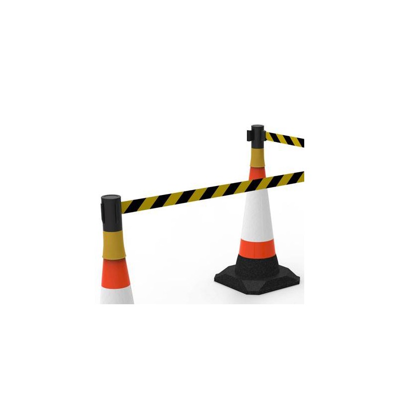 (0) Enrouleur de sangle (3,7m) pour plots de signalisation de chantier (cônes) / délimitation de zones industrielles.