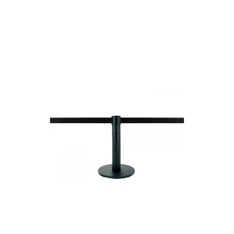 Petit poteau noir (d'une hauteur de 45cm) à sangle ruban extensible, sur socle mobile.