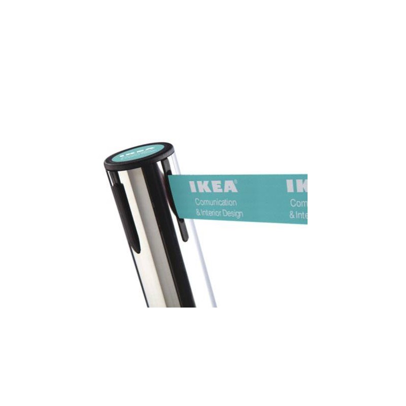 (0) Mini afzetpaaltje zilver (45cm) met uittrekbaar lint. Personalisering van het lint (printen van uw logo) voor maar 25€ extra.