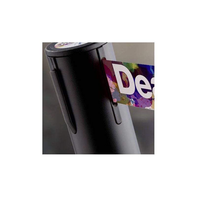 (0) Rode afzetpaal met uittrekbaar afzetlint 250cm beschikbaar in 11 standaard kleuren of 100% aanpasbare riem (RAL-kleur, logo,...).