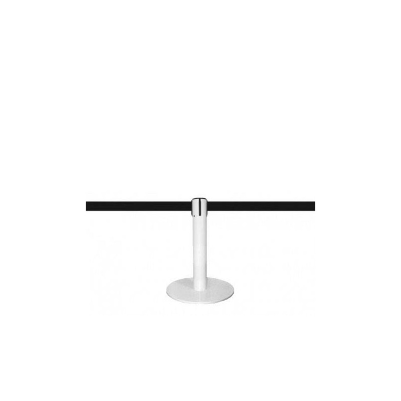 Mini afzetpaaltje wit gelakt (hoogte: 45cm) met 250cm uittrekbaar lint, speciaal ontworpen voor museums, auto-showrooms,...