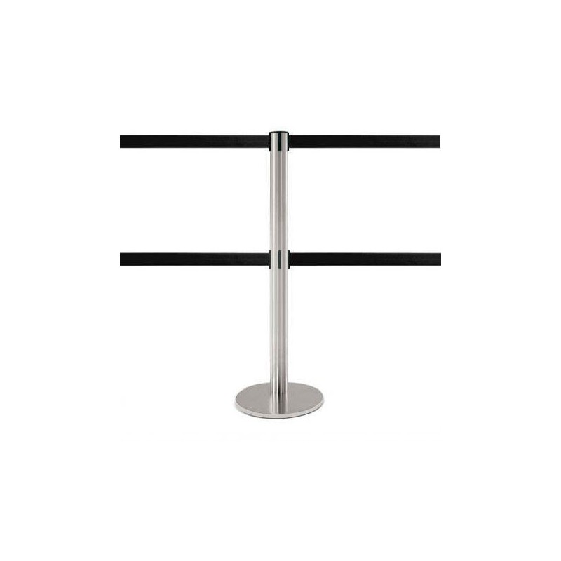 De afzetpalen met dubbel uittrekbaar lint zijn uitgerust met een automatisch remsysteem. Robuust, betrouwbaar en duurzaam: gemaakt van roestvrij staal en volledig gemaakt in Europa. Basis en paal zijn gewogen voor een perfecte stabiliteit. 4-wege-systeem (1 lint en 3 ontvangers).