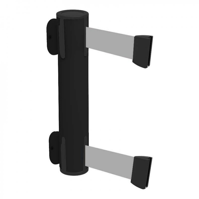 Dubbele wandcassette zwart met 3,7m uittrekbaar lint voor betere zichtbaarheid van de afzetting.